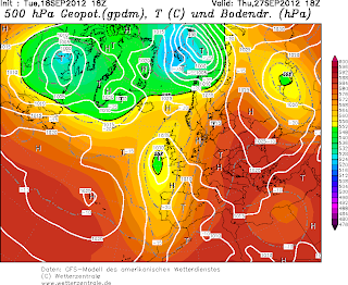 Η θερμοκρασία τις επόμενες μέρες, από την Τετάρτη 26/9 και έπειτα δηλαδή, θα σκαρφαλώσει ξανά σε τιμές κοντά στους 35 βαθμούς τοπικά τις μεσημεριανές ώρες. Όπως φαίνεται και στο χάρτη των 850 hPa παρακάτω πολύ θερμές αέριες μάζες πλησιάζουν τη νοτιοανατολική Ευρώπη από τη βόρεια Αφρική, με παράλληλη μετακίνηση πιο ψυχρών αερίων μαζών στη βορειοδυτική Ευρώπη. Κλασική συνοπτική κατάσταση, ώστε να διατηρηθεί η ζέστη για μέρες πάνω από τη χώρα μας.